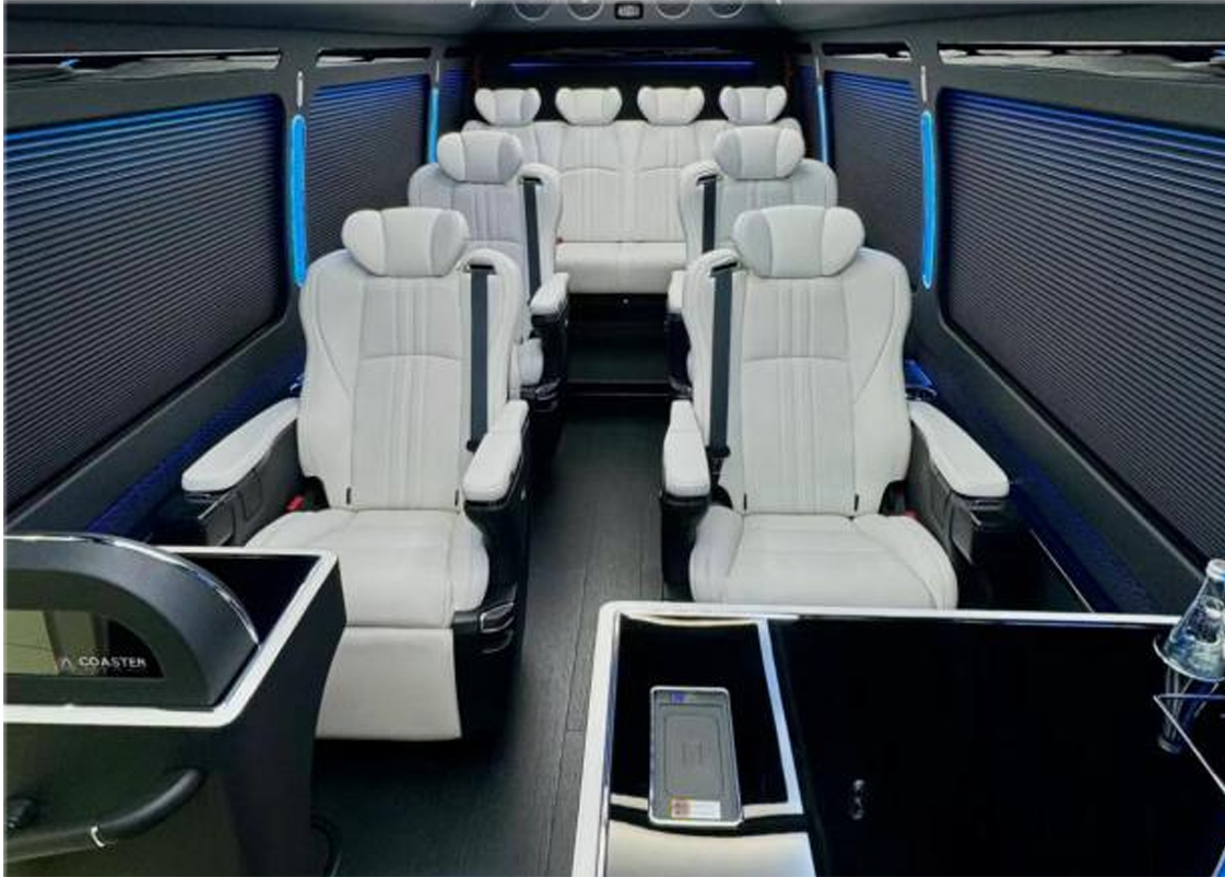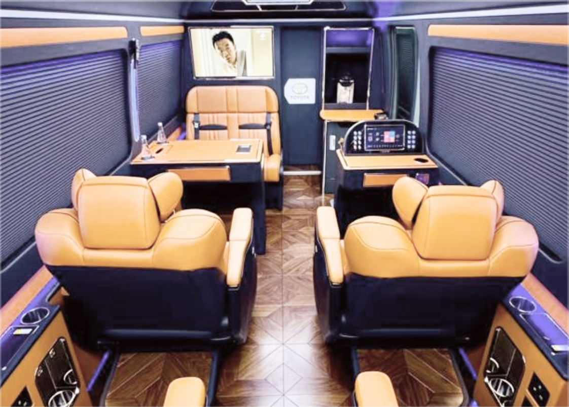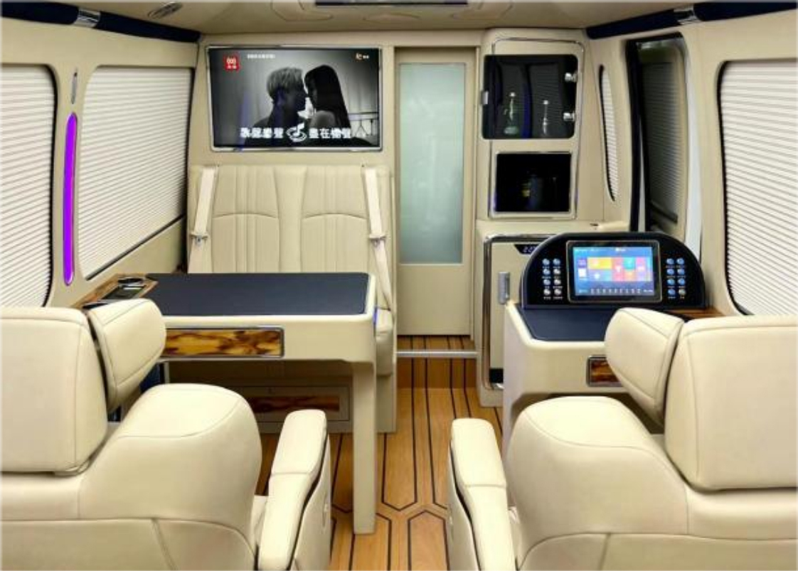 車內(nèi)定制多功能豪華座椅、豪華辦公桌以及秘書桌;