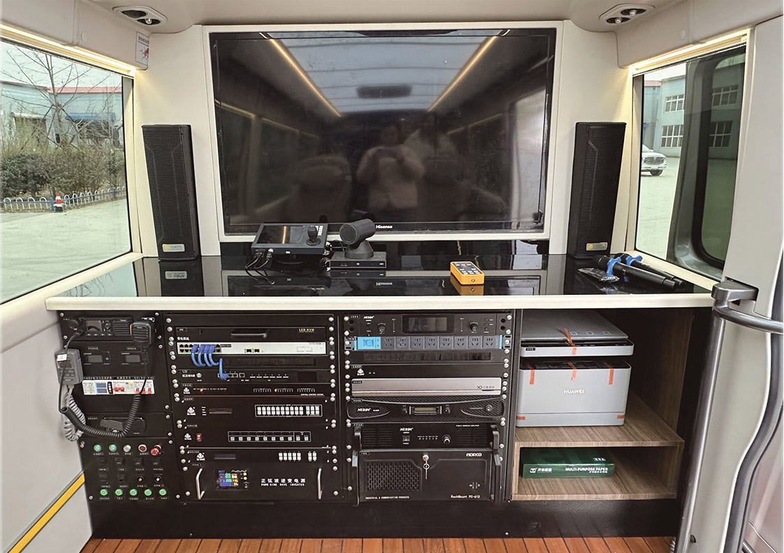 九瑞多功能應(yīng)急指揮車具備通信傳輸、信息采集、信息網(wǎng)絡(luò)、指揮應(yīng)用、綜合保障等系統(tǒng)功能??蓪?shí)現(xiàn)應(yīng)急指揮現(xiàn)場和后端指揮中心音視頻互聯(lián)互通,鏈接旗下便攜指揮箱、機(jī)器人、無人機(jī)單兵通信設(shè)備,形成人、車、機(jī)、場景智聯(lián)互動(dòng),以滿足全場景指揮需要。構(gòu)建以車輛為中心的智能互聯(lián)通信集群,并可作為綜合協(xié)調(diào)多功能指揮中心。