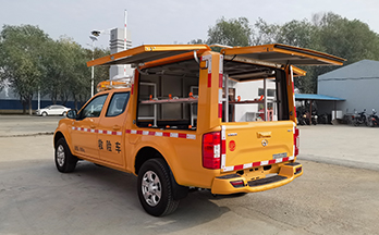 皮卡式自來水管道工程應急搶險搶修車:為適應自來水管網(wǎng)管道應急搶修作業(yè)的需要,針對搶修作業(yè)工具的存放需要及工作特點,本公司研制出新皮卡式應急搶險搶修專用車:皮卡式帶壓堵漏現(xiàn)場應急搶險搶修車。符合外出搶修工具的存放,且外出速度快,效率高,可稱為“搶修110”。