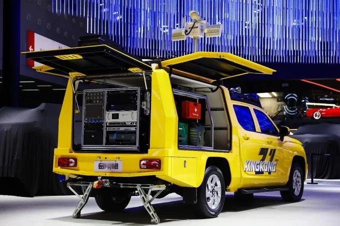 該應(yīng)通信指揮車是為應(yīng)對自然災(zāi)害而打造的車型,可實現(xiàn)多維偵測、無憂通訊、智能保障,用于水利、電網(wǎng)、通信等行業(yè)設(shè)備搶修及消防、災(zāi)害等應(yīng)急情況現(xiàn)場指揮作業(yè)。該車貨箱增設(shè)數(shù)種專業(yè)通訊設(shè)備,比如一些受到自然災(zāi)害影響的場所,原有的通信設(shè)備可能無法正常工作,會導(dǎo)致現(xiàn)場的手機網(wǎng)絡(luò)出現(xiàn)無信號、弱覆蓋、網(wǎng)絡(luò)擁塞等狀況。這時就需要應(yīng)急通信車登場,為救災(zāi)現(xiàn)場人員提供語音及上網(wǎng)功能的保障,在一些邊遠地區(qū),還可以借助衛(wèi)星通信設(shè)備實現(xiàn)上述保障能力。而皮卡本身就擁有較強的通過性,對于需要這種設(shè)備的地區(qū)也能更加自如地應(yīng)對。