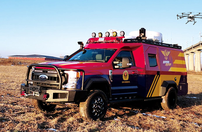 該救險車不僅配備常規(guī)的通信、指揮、供電、照明、破拆等功能系統(tǒng),九瑞更是結合隧道搶險現(xiàn)狀,研發(fā)集成了供水、流食輸送、防碰撞無人機監(jiān)控、氣體監(jiān)測及防護等幾個特殊模塊;在搶險救援中降低搶修人員的勞動強度和避免人員生命財產的損失,大大提高工作效率。