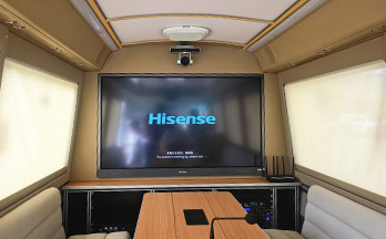 該車是在豐田考斯特客車的基礎(chǔ)上進(jìn)行改裝的,底盤乘坐舒適,行駛平穩(wěn),空間寬敞,改裝后可以乘坐9人