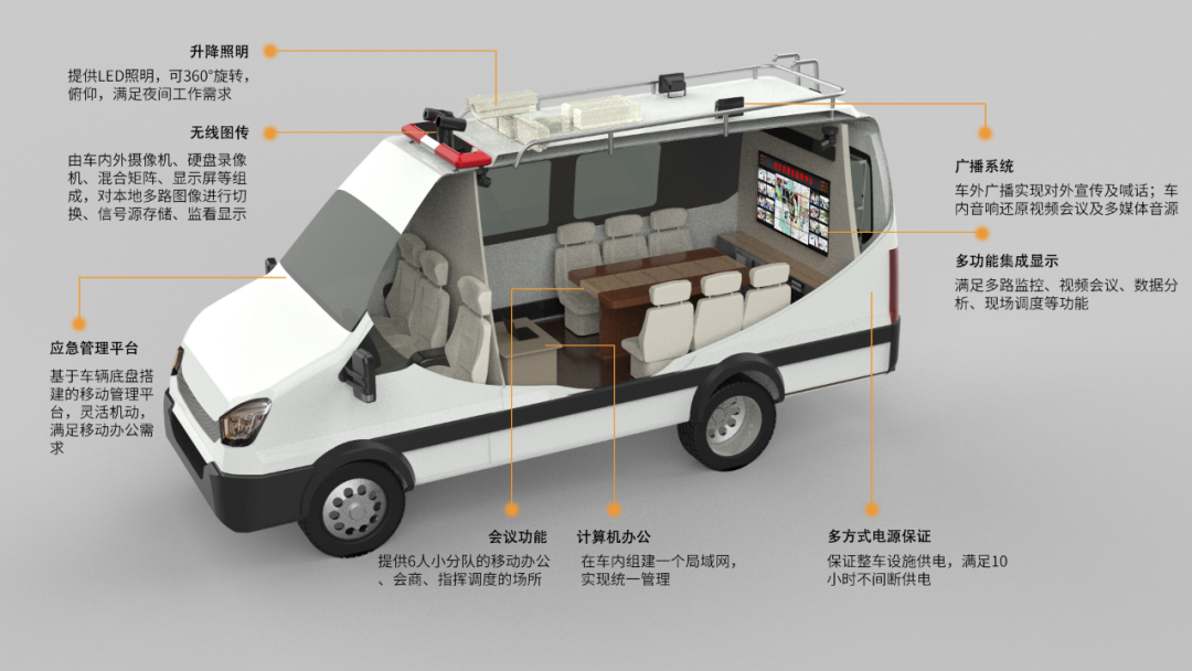 便攜基站如同 “信號守護(hù)者”,可快速部署,在短時(shí)間內(nèi)構(gòu)建起穩(wěn)定的信號覆蓋區(qū)域,保障現(xiàn)場人員的通信需求;多功能移動(dòng)平臺(tái)系統(tǒng)則為指揮車提供了堅(jiān)實(shí)的基礎(chǔ),它不僅確保車輛具備良好的機(jī)動(dòng)性和穩(wěn)定性,還能靈活適配各類設(shè)備,滿足不同應(yīng)急場景的需求。